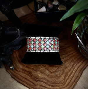 Embrace the essence of the ocean with our one-of-a-kind boho bracelet! Each square on this silver masterpiece is meticulously set by hand, creating an organic pattern that mirrors the ebb and flow of the sea. The vibrant turquoise stones evoke tranquility and protection, while the coral adds a touch of fiery energy. Crafted from recycled sterling silver (92.5), this bracelet is not just jewelry—it’s wearable art. Dive into the healing properties of turquoise (associated with wisdom and communication) and coral (known for vitality and passion). Whether you’re strolling along the beach or dancing under the moonlight, this unique piece will make waves wherever you go. 🌊✨😊"